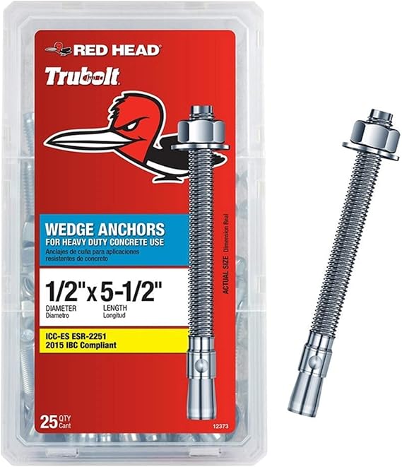 1 X 9 Red Head Trubolt Wedge Anchor Zinc Plated / Red head wedge anchors are code recognized for use in uncracked concrete.