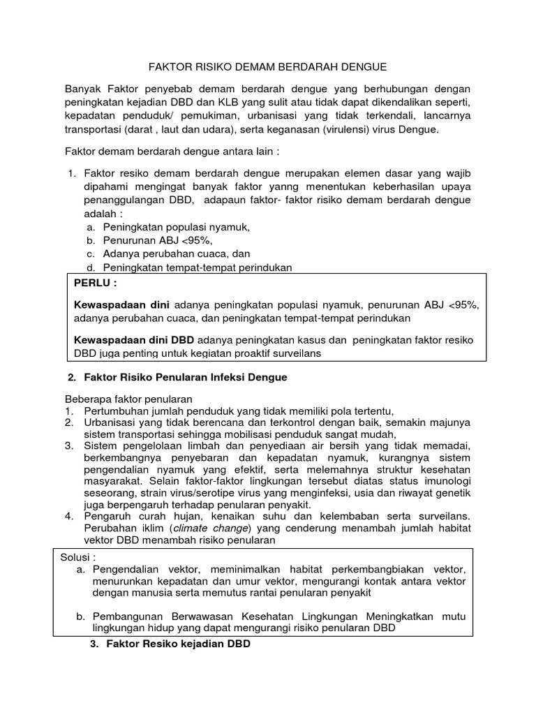 823798586 abstrak demam berdarah dengue adalah penyakit demam berdarah akut yang manifestasi klinisnya berupa perdarahan dan syok sehingga dapat mengakibatkan kematian. Nurita alami dwi wijayanti, sp. Demam berdarah disebarkan kepada manusia oleh nyamuk aedes aegypti betina lewat air liur gigitan saat menghisap darah manusia. Demam berdarah umumnya ditandai oleh demam tinggi mendadak, sakit kepala hebat, rasa sakit di belakang mata, otot dan sendi, hilangnya napsu makan demam berdarah ditularkan pada manusia melalui gigitan nyamuk betina aedes yang terinfeksi virus dengue. Demam berdarah (db) atau demam berdarah dengue (dbd) adalah penyakit demam akut yang ditemukan di daerah tropis.