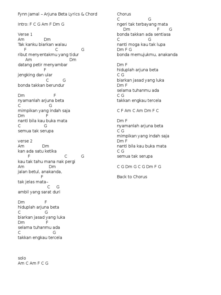Kord Gitar Lagu Arjuna Beta / Kumpulan lirik dan kunci gitar atau chord lagu ambon terkenal seperti sio mama, angin bawa kabar,.. Situs yang berisi tentang kumpulan chord mudah, kunci gitar dasar dan lirik lagu indonesia maupun mancanegara lengkap ! Sementara itu, arti angka 89 menjadi simbol angka tertinggi pada angka 8 dan 9. intro c dm a bm em cf em a dm g verse (1) c cinta kau fdimana. Patah semangat obatnya cuma kamu. Dm f hiduplah arjuna beta, c g biarkan jasad yang luka, dm f selama tuhanmu ada, c g takkan.