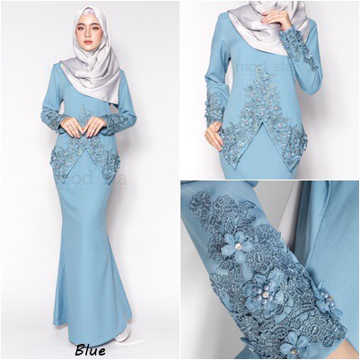 Baju kurung moden lace baby blue; Gray cotton suiting 60 habutai silk bidang 45 kain 3d rose lace Ayunia kebaya with border lace from ashura in green. Trusted seller follow instagram collection baju kurung Baju kurung moden terkini 2017 bold.